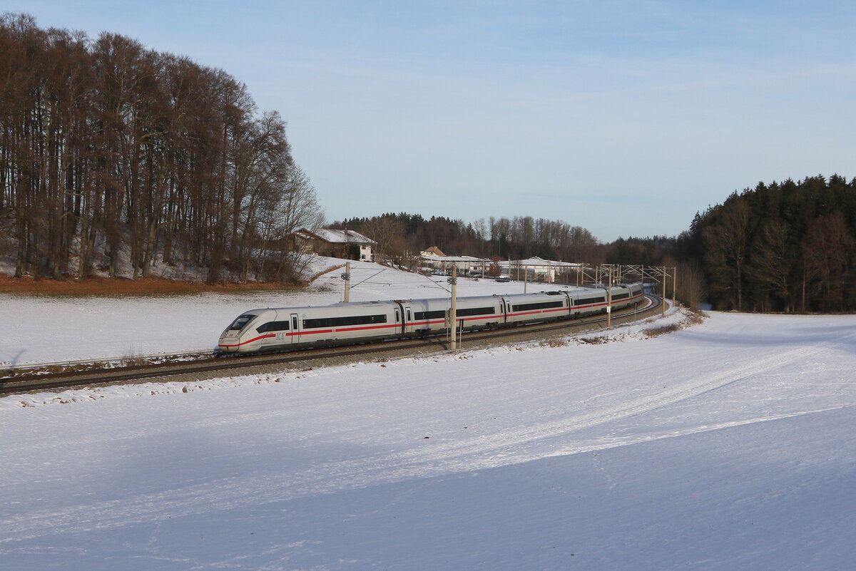 412 230 als "ICE 114" auf dem Weg nach München. Aufgenommen am 31. Oktober 2025 bei Axdorf im Chiemgau.